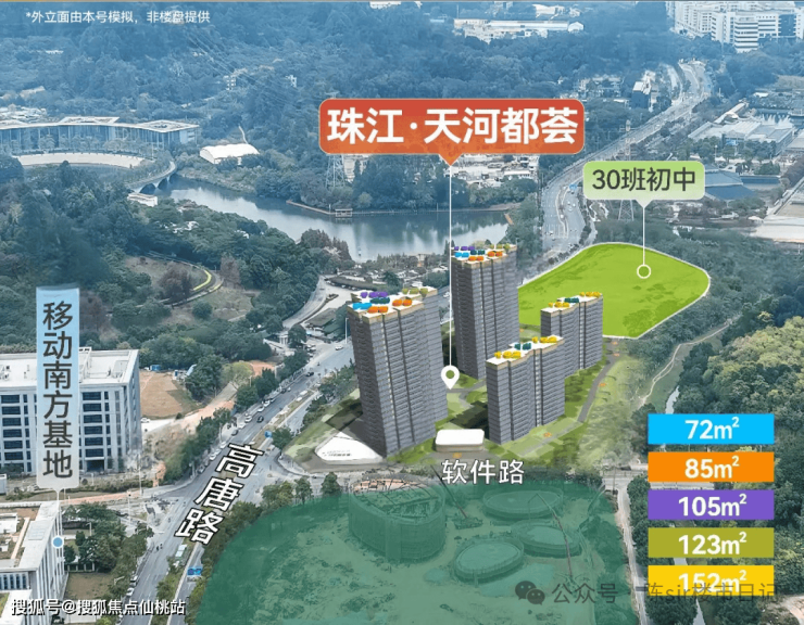 二期保留一期爆款面积段,72-85-105-123塔楼+105-144平板楼户型,这也是天河市区学铁商三房上车门槛最低的产品。