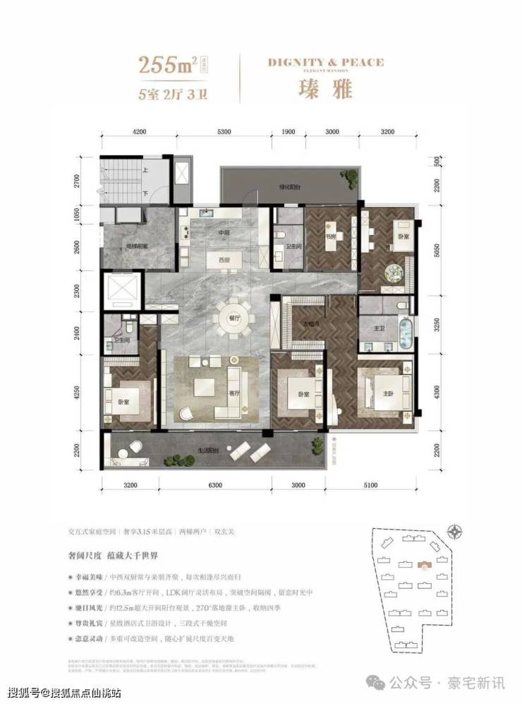 【瑧雅】5室2厅3卫户型,建面约255㎡