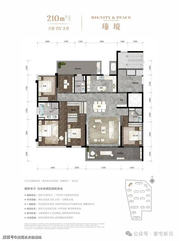 【瑧境】5室2厅3卫户型,建面约210㎡