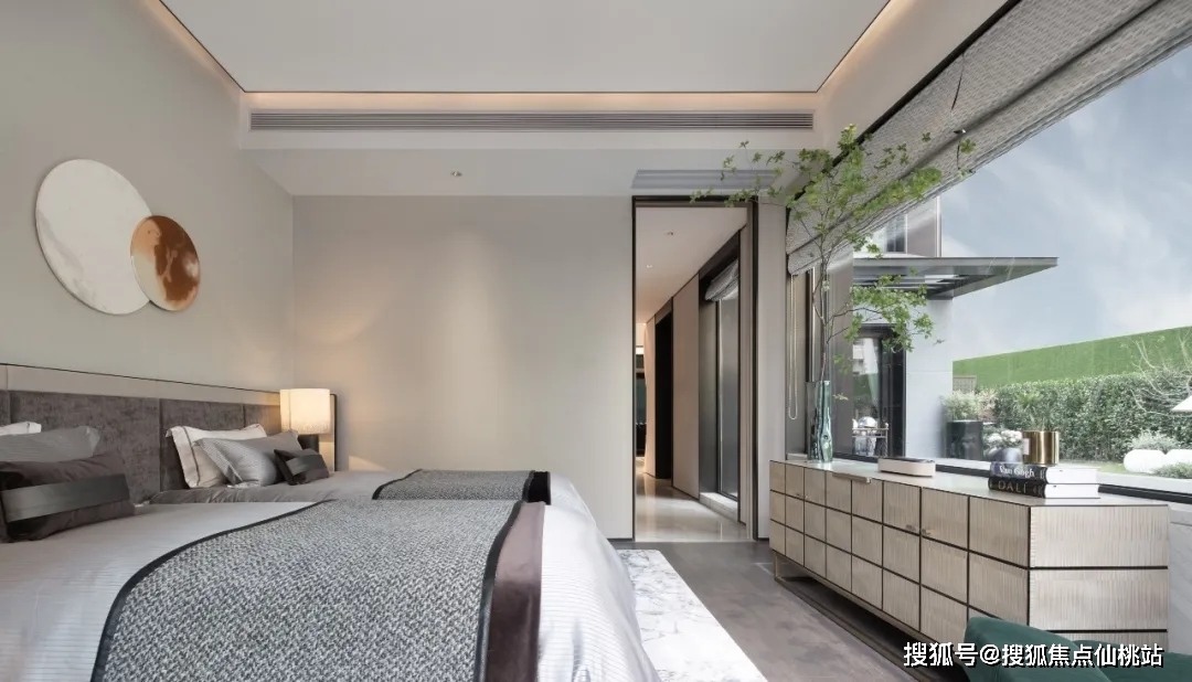 三楼便是主人的尊享套房,整层空间做到了享受与体验,彰显主卧的尊贵感。主卧以开放式的设计,大面宽开间搭配落地窗的设计,每天清晨醒来便可感受丝丝柔和的阳光洒在床边。