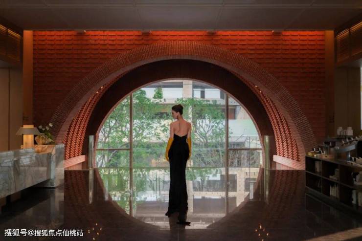 借鉴贝聿铭大师的美秀美术馆的设计手法,近10米高的拱形落地窗,将约600㎡下沉庭园的立体山水如画卷般“框景”于眼前。