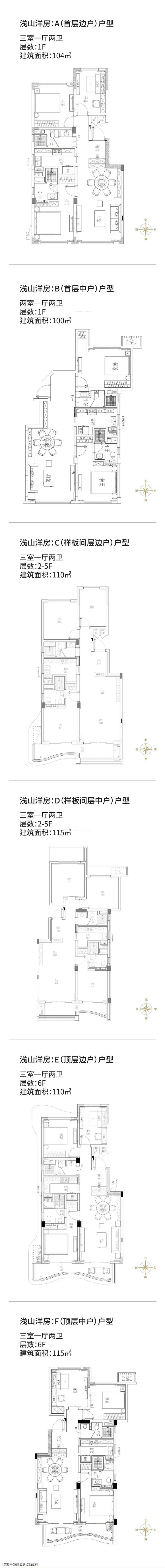 100㎡ 两室两卫 | 104㎡-115㎡三室两卫