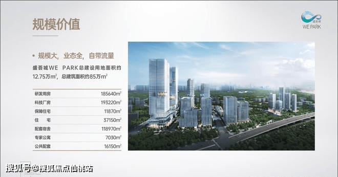 盛荟城WE PARK总建设用地面积约12.75万㎡,总建筑面积约85万㎡
