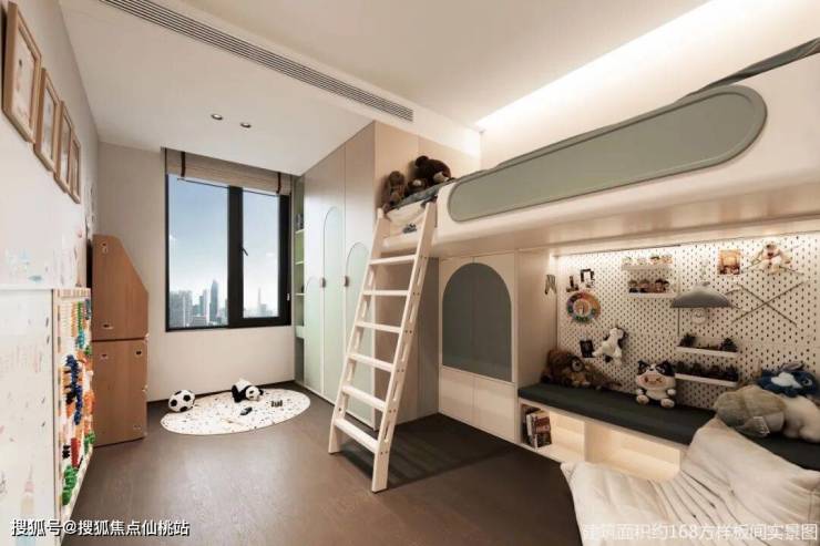 一方承载多元功能的“X空间”,既是一家人共读游戏的亲子互动厅,也能变身独立的琴房、画室,或是孩子邀请好友共度周末的秘密基地。儿童房被赋予更宽尺度,多出来的几十厘米,不仅能放下带书架的大书桌,更能容纳左侧的漫画奇幻世界与右侧的科学探索梦想,一块乐高底板便是孩子主宰的创造王国。