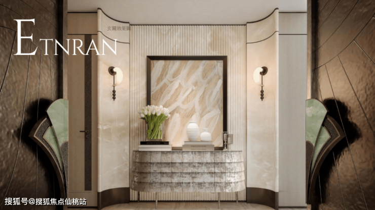 350户型以精致沉稳的东方隐奢风格为主线,定制贝母入户门与高级灰石材地面奠定奢雅基调。空间通过深浅色调对比、PU皮革与浅色奢石的材质碰撞,营造张力与温度;弧面天花则以柔和造型平衡视觉,共同打造出兼具力量感与雅致氛围的居所。