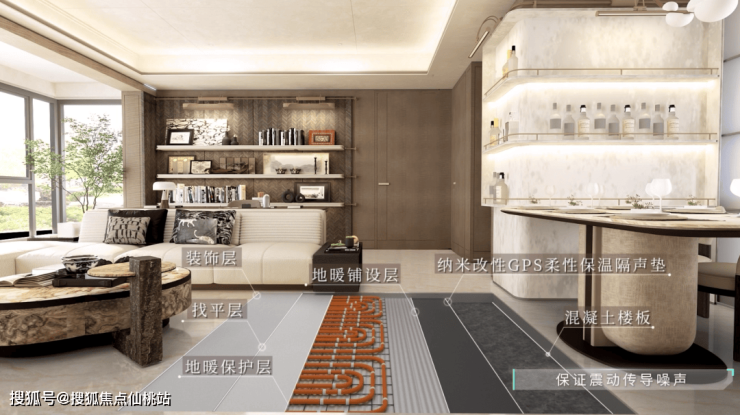 中建悦庐·桐溪浮筑楼板系统,采用挤塑聚苯板与专业减震隔声垫组合技术,构建浮筑楼板结构,有效吸收与阻隔振动传递。让上下楼层生活互不干扰,各享其静。