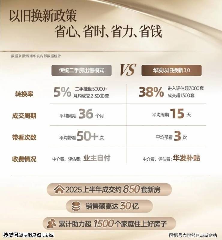 华发以旧换新,珠海首创“收购+帮卖+补贴”模式,业务成交量全国领先,2025上半年成交量约850套,超2024全年业绩总量,新房销售额高达30亿,累计助力超1500个家庭住上好房子!(数据来源:珠海华发内部数据统计)