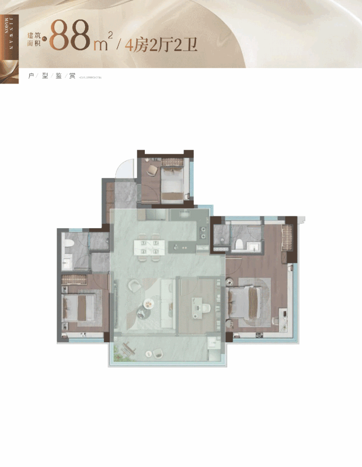 “住得好”从来不是单选题,更令人惊喜的是,同样的88㎡空间,通过巧妙的设计革新,还能实现4房的越级配置。
