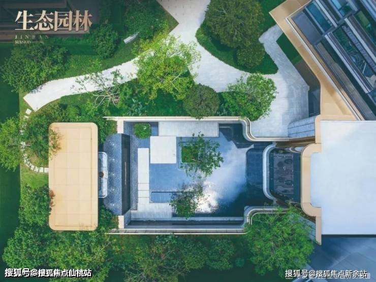 新西兰灰仿石搭配水景,呈现出天然水墨意境;蜿蜒其间的漫步小径,共同构成一方静谧的社交留白,让圈层对话在自然怀抱中更显从容。