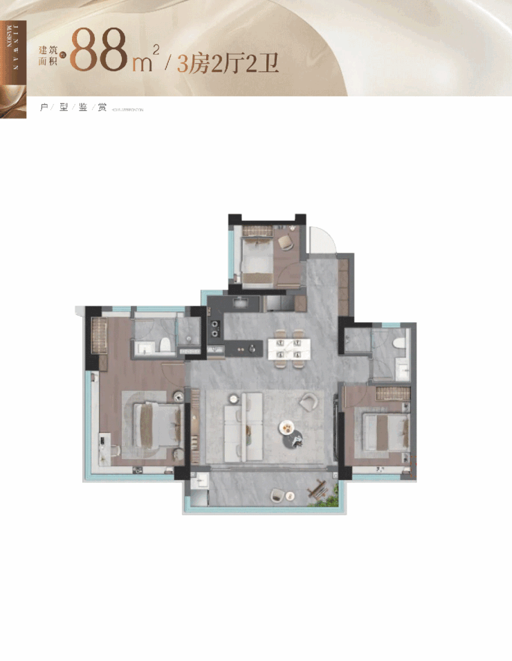 建面约88m²3房设计 媲美百平空间体验
