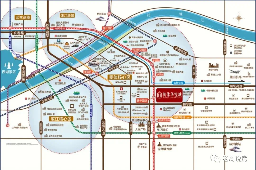 商业配套:奥体博览城——莲花碗、杭州城市之门、信达中心、SKP商场、万象城商场、来福士商场等大型综合