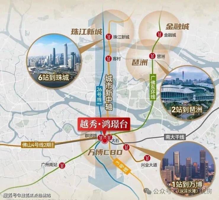 临近26号线群贤路站(规划中,首次环评已通过),5站客村,6站珠城,与3号线平行有效分流通勤。