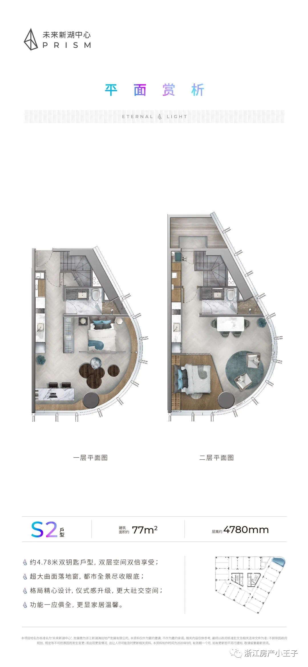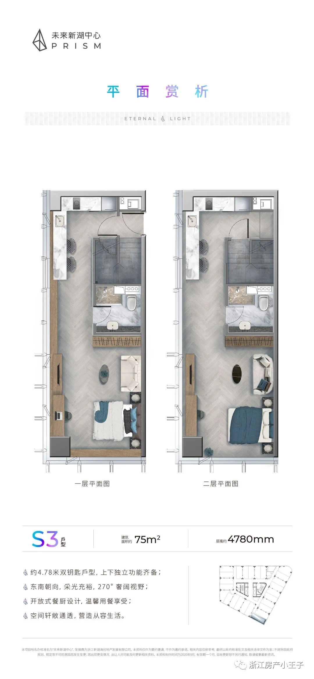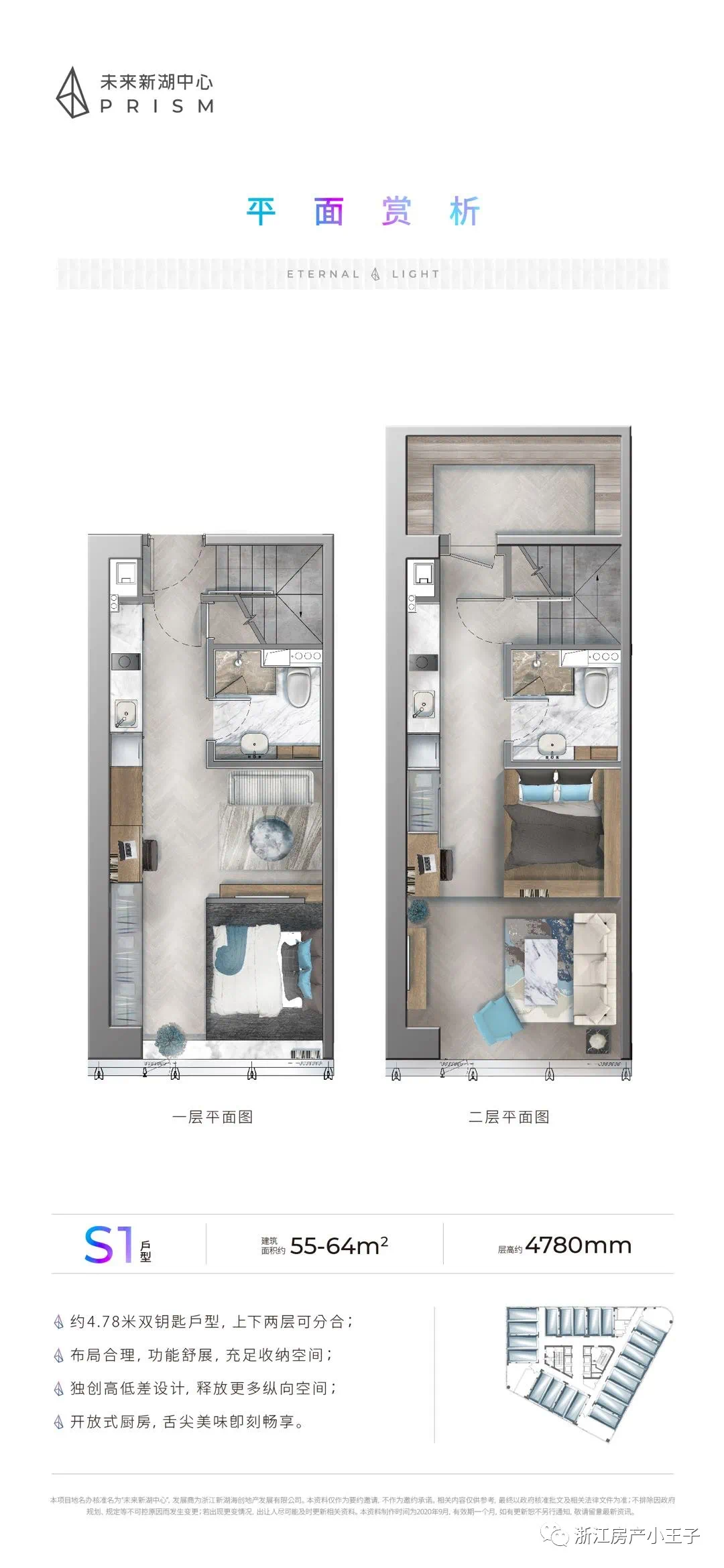 建筑面积约40-80方多功能studio(层高约4.78米)首创的室内高低差设计令普通「双钥匙」户型再进阶,空间体验更优。