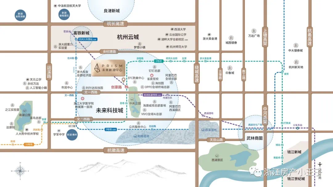 阿里巴巴全球总部、菜鸟总部、VIVO全球AI总部、OPPO全球终端总部、之江实验室、阿里达摩院、中电海康集团、华立科技、字节跳动研发中心、超重力离心模拟与实验装置等高能级名企/机构林立。