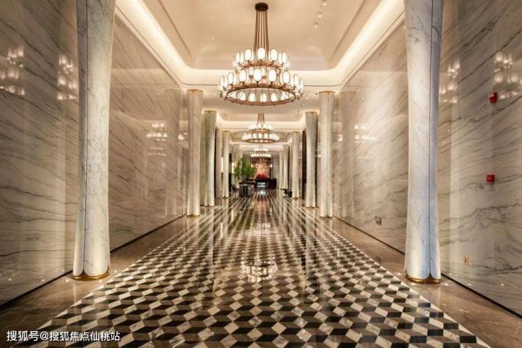 下沉式中庭水景园林、引光影到空间、外挂罗马洞石、满目极尽奢华;