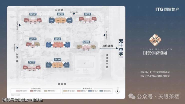 国贸学府锦樾共8栋,并自带一个幼儿园,相当于12年一站式上学,主推建面约86-111平学府迭代高层 | 约132-139平樾级四代宅,并响应住建部好房子标准,高层层高3米,四代宅层高3.15米。