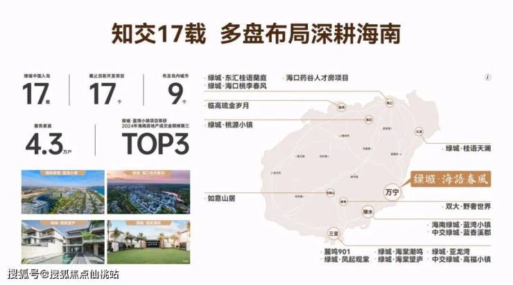 •多盘布局 17载深耕海南 绿城深耕海南17载,从度假到居住的多元化产品线深度布局,同频海南发展,打造多个高端佳宅作品,以超越行业的硬核产品力,在品牌影响力、客户口碑、区域销售业绩等多个方面实现全面领先。