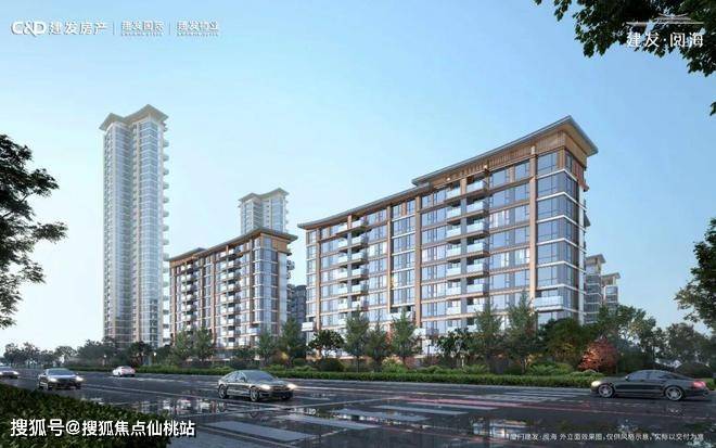 建发·阅海采用建发房产诗意东方风格打造,建筑塔冠上,中式挑檐的元素以一高一低的错落形式,既诠释“东方屋脊”的端重形象,又不失现代的轻盈灵动。香槟金金属线条、金属漆、深浅色质感涂料和多彩漆等多重复杂材料的运用,则写照东方美学的“流光溢彩”与湾海的大气多姿,焕新岛城人居建筑审美的至善追求。