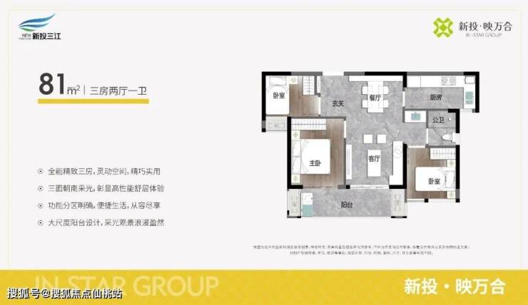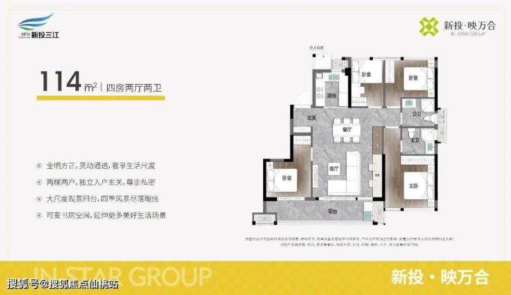 在户型设计上,新投・映万合聚焦建筑面积约81㎡~114㎡的三至四房,既尊重青年群体的预算限制,又为家庭全生命周期成长预留空间。