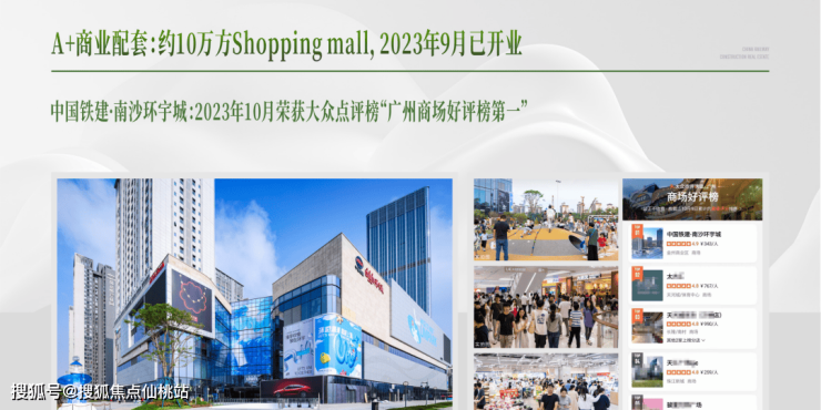 【商业】10万平方米高端Shopping mall(中国铁建南沙环宇城),2023年9月已开业。