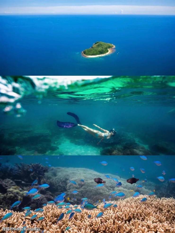 这里有着全海南最纯净,能见度10米深的玻璃海。站在石梅湾上远眺就能看到加井岛,海中间白色沙滩簇拥着的绿色小岛,同时也是一座原生态未被开发的无人海岛。