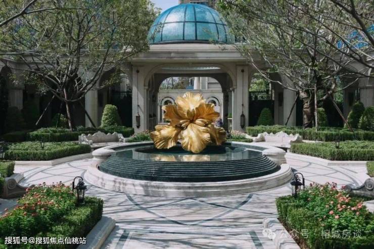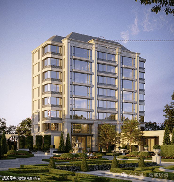 核心配置:法式园林、干挂石材立面、私家庭院 + 星空露台、35% 绿化率