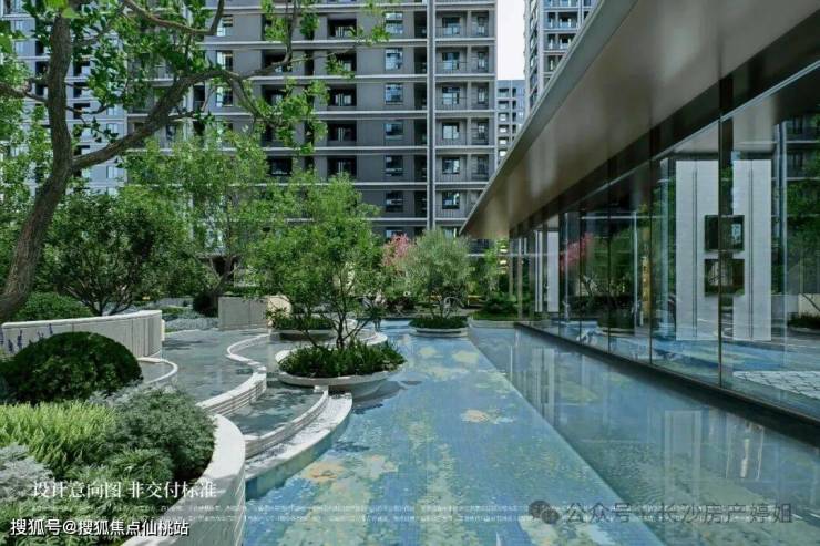 营造奢阔门仪、约280㎡水景中庭、山水清幽的澄明雅院,让归家路步步风景,风雅相伴。