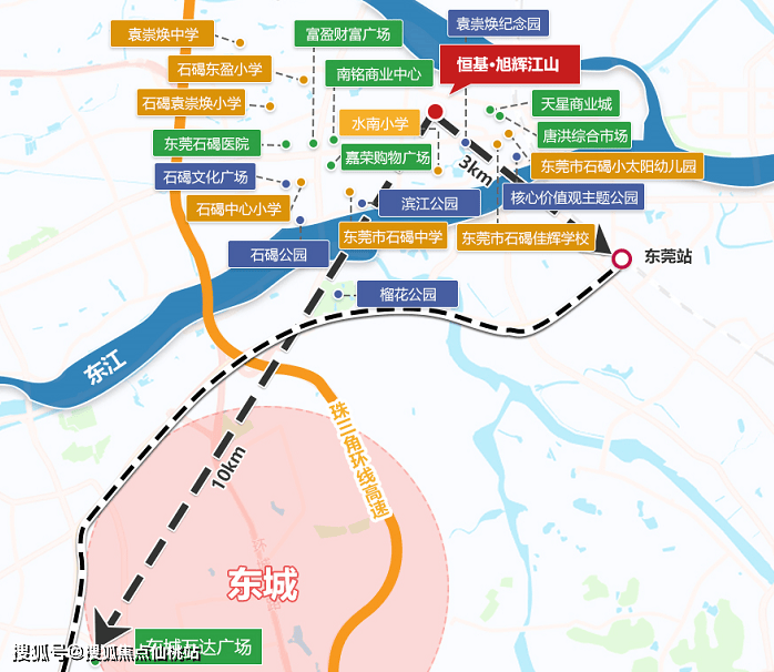 恒基·旭辉江山距离袁崇焕纪念园仅约500米,约800米就能直达东江湾畔,优享公园生态和文化休闲资源,6大商圈、6处公园、8所学府环伺,约3公里直达R2线榴花公园站、珠三角环线高速石碣站;约十来公里即达东城万达、国贸城、汇一城商圈,畅享东莞主城配套生活圈。