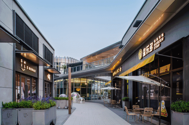 星罗棋布的特色餐饮、定位各异的品牌商业,呈现出多元风格。街区两侧,摆满了精心布局的绿植。一张木桌,配上休闲沙发或座椅,就是都市人向往的休闲社交空间。