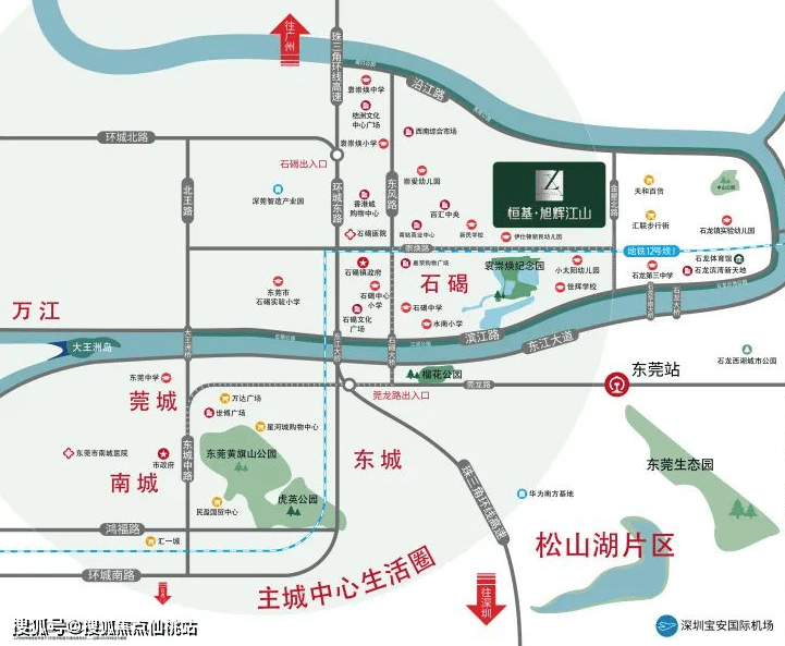 还有多维立体交通,地铁2号线、12号线(规划中)畅达东莞各镇街;崇焕路、滨江路、环城路等主干道速接主城;珠三角环线高速、济广高速、京港澳高速、广深铁路环绕,多维速融湾区。