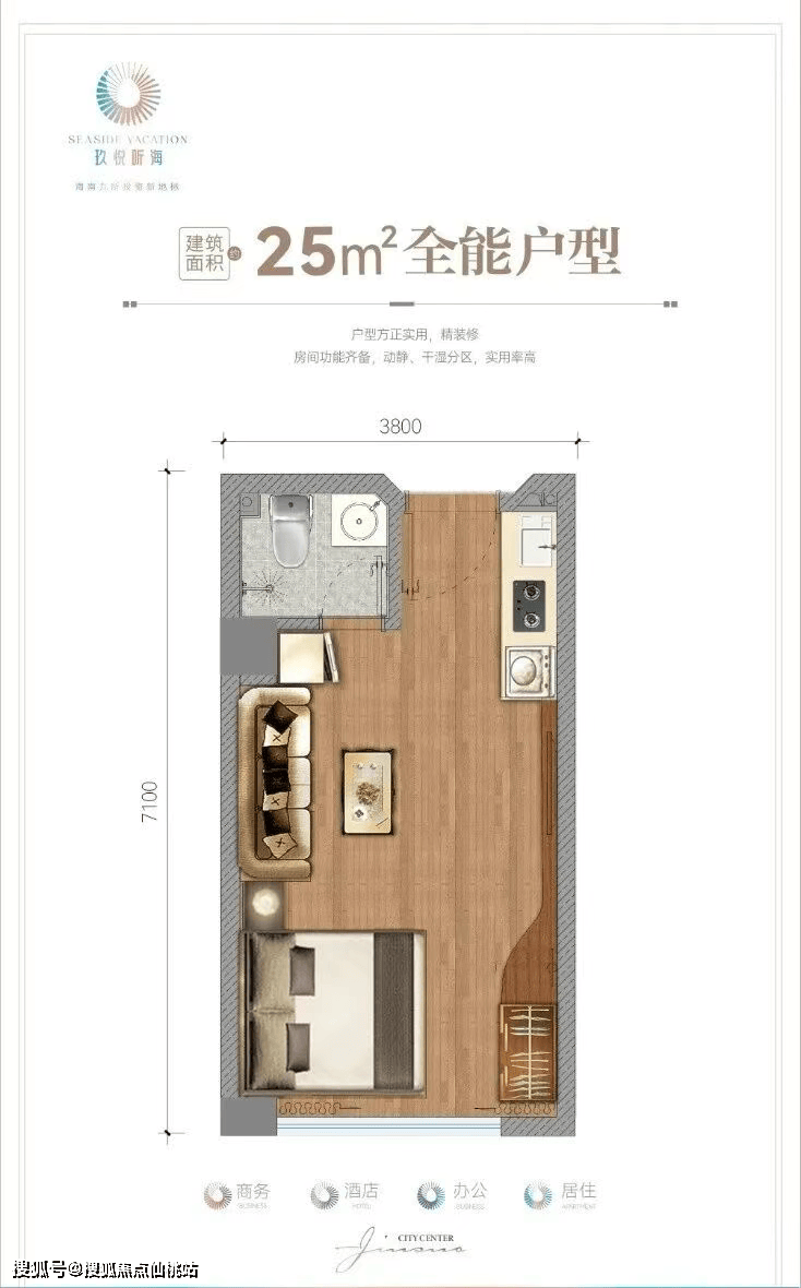 三层至七层为商住210套(面积约22.88㎡-39.66㎡,民宿、度假酒店、商住会所等)。