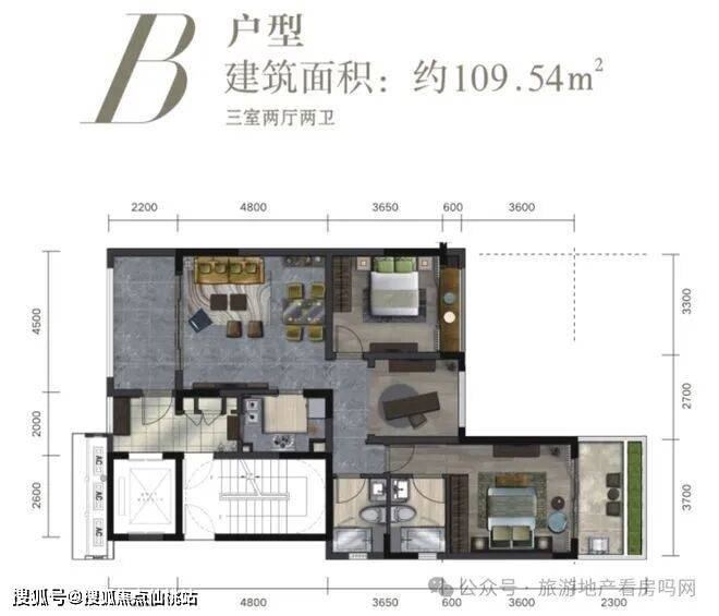 3#平层图:主力户型为80㎡两房、97㎡两房、110㎡三房、122㎡大三房