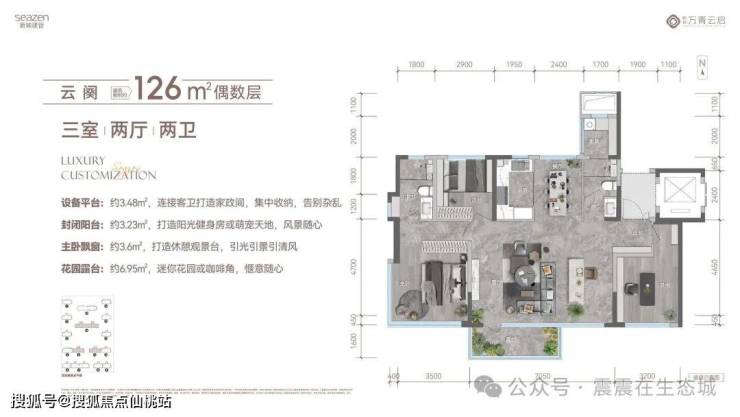 总价范围:96㎡三室,总价约170-180万。112㎡三室,总价约230-230万。126㎡三室,总价约250-280万