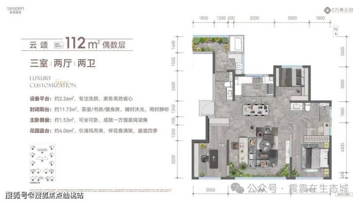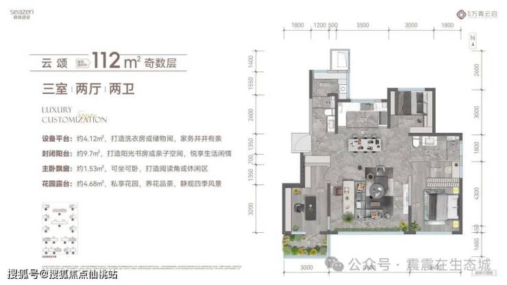 高赠送面积:全赠送外跨露台及飘窗,奇偶层错位设计提供南向或北向露台,得房率高达92%-96%。