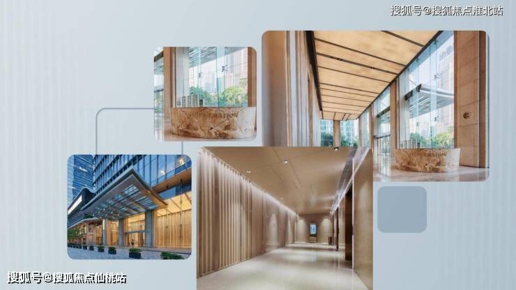 入口及首层大堂:地台及墙身以大理石/花岗石为主,水景玻璃墙,玻璃和金属装饰镶砌,石膏板造型天花。