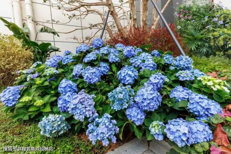 再往前,便漫入「莫奈花境」主题园林,这里借鉴印象派的艺术灵感,运用红果冬青、无尽夏绣球、络新妇等缤纷植物,搭配南洋风情铺装,营造出层次丰富、色彩烂漫的沉浸式花境画卷。