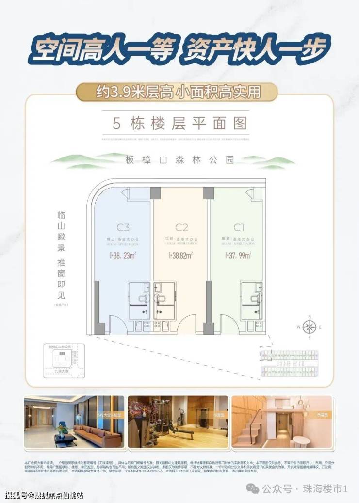 首推5栋建筑面积约38-39㎡高定资产,约3.9米层高小面积高实用,城芯优质资产。
