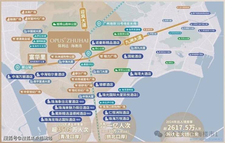 毗邻三大国门口岸,(驾车)约9分钟直达拱北口岸无缝过关澳门;毗邻前山站、珠海站两个城轨高铁站,更有广州地铁18号线延长线(规划中),通行全国;