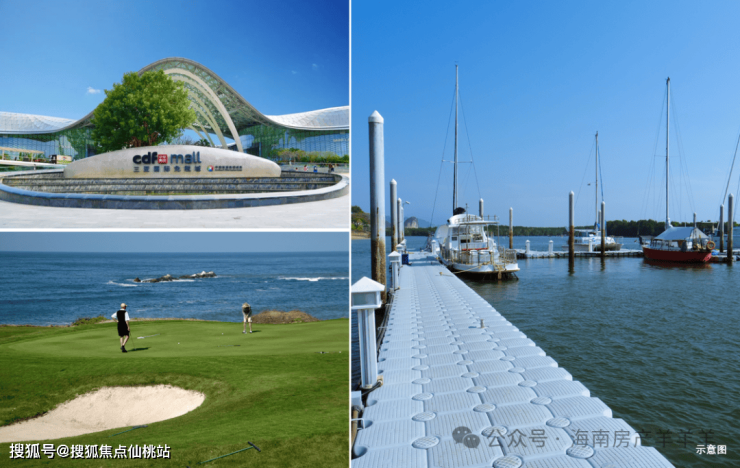 海棠湾国际免税城,清水湾游艇会,鉴湖蓝湾滨海高尔夫球会及三大高尔夫球会(滨海林克斯球场、丘陵地貌球场);