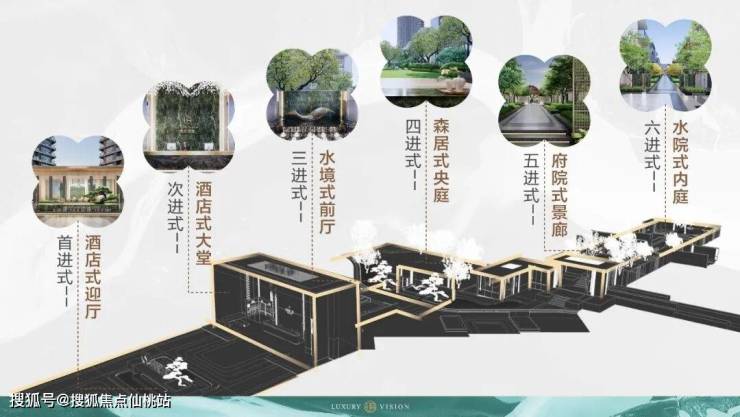 ★【一轴六进 礼序归家】循序渐进的六进归家礼序,从酒店式迎厅到水院式内庭,步步生花,在这里,园林不再是静态的观赏背景,而是根据年龄与时段动态变化形成的一步一景。