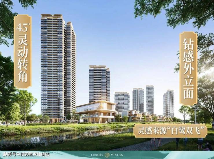 ★【白鹭双飞 滨水之庭】以45°灵动转角的非凡立面,诗意演绎“白鹭双飞”意象,成为城市瞩目的艺术地标,尽享归家府院礼序感及恢宏感,将品质感从建筑外观无缝延伸至整个归家动线。