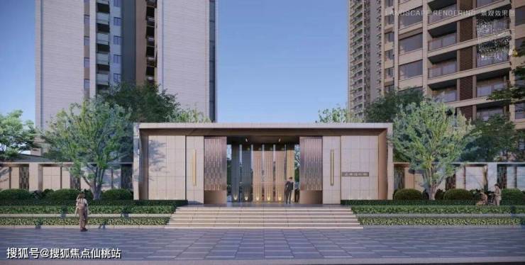 以自然香樟树围合、全石材入口迎宾门楼打造,从流光门楼,到中轴光影水景,再到艺术入户大堂,均不惜成本重金筑就。