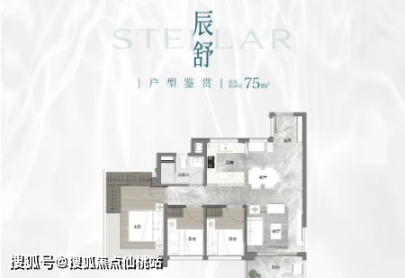 其中,75㎡三房一卫户型,三开间朝南,空间利用率高,适合年轻刚需家庭;