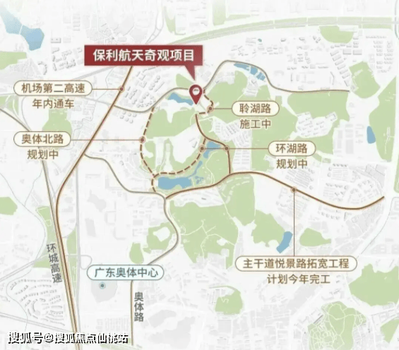 保利辰园湖境位于天河区大观路以东、奥体路以北,隶属于天河智谷片区