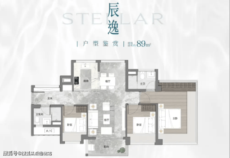 89㎡三房两卫户型采用LDK一体化设计,阳台进深超1.8米,功能分区清晰,居住舒适度较高;