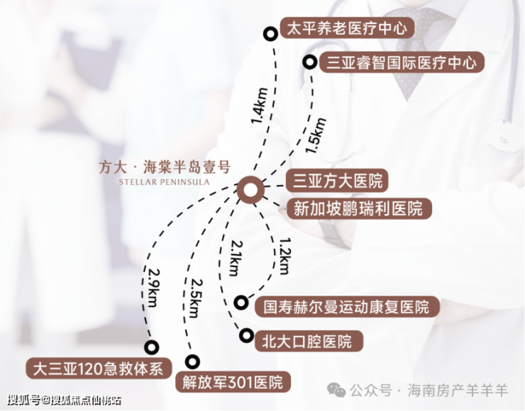 汇聚解放军总医院海南分院、北大口腔医院三亚分院、国寿赫尔曼康复中心、上海嘉麓医院三亚医院(规划中)、方大医院(2026年开工)等顶级医疗力量,串联成全球顶级医疗资源聚合带。