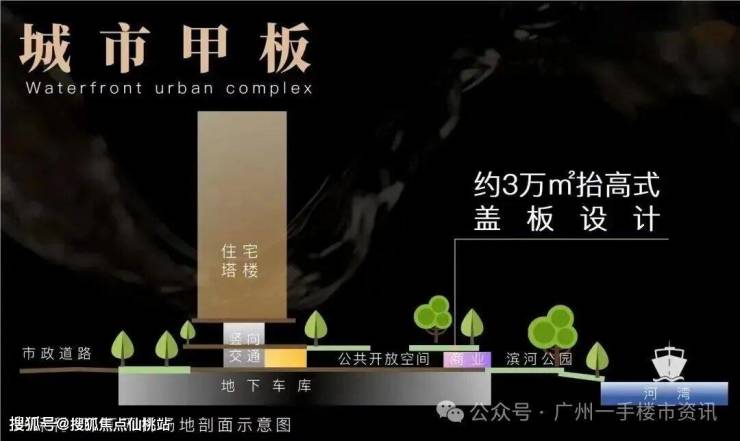 保利为了确保项目低楼层单位每一户都能看江,珠江天悦还借鉴了新加坡港湾城市的设计理念,采用“双层架空盖板”的设计,使得住宅整体楼栋抬高了14米,这种设计保证了项目所有楼层都能享有开阔的江景视野,14米的抬高架空相当于把一楼做到五楼的高度,真正的实现了低楼层也能看江的景观视野。