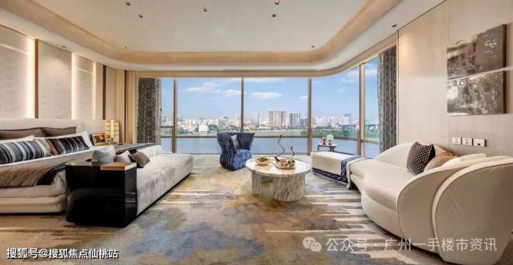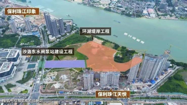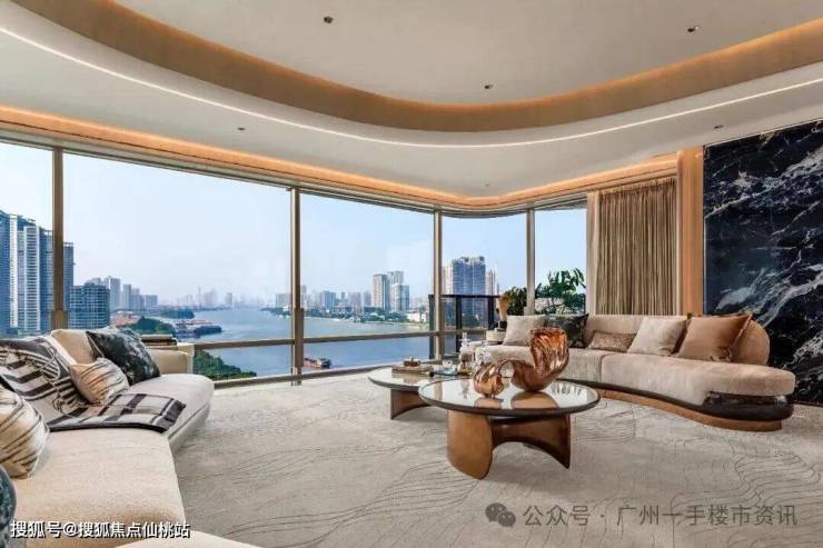 保利珠江天悦住宅项目择址广州荔湾白鹅潭沿江带上的东沙国际商贸港片区,是广州为数不多与珠江边没有道路间隔的江景豪宅社区,项目离珠江边最近的直线距离仅约38米,整个珠江天悦住宅占据着白鹅潭约700米长的私家江岸线。