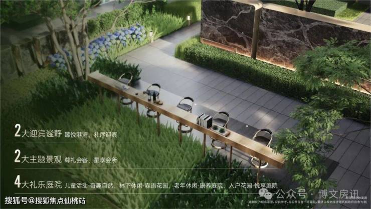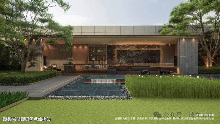 将自然之美与精致工艺融为一体,打造景观会客厅、艺术水景、户外吧台、阳光草坪等静谧空间。