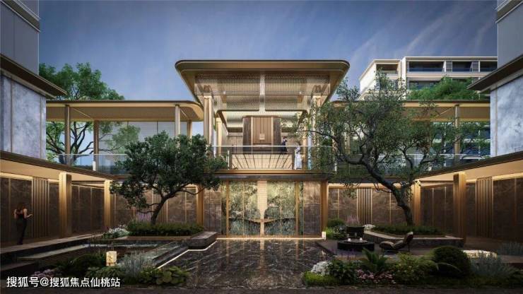 外立面也采用现代都市风格,运用了大面积的LOW-E玻璃+鎏金金属材料,用料与设计标准超过了柳州很多顶豪。大门里侧则有下沉式庭院与风雨连廊,业主每天出入大门无惧风雨。